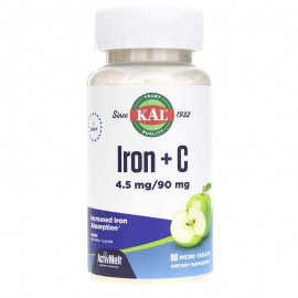 KAL Iron + C ActivMelt combines two powerful minerals in one easy melt-away tablet. Iron is an essential mineral used in several bodily functions, such as transporting oxygen throughout the body. Vita..