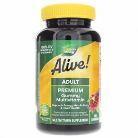 Alive!® Adult Multi-vitamin Gummies is a gluten and gelatin-free (made with pectin) multi-vitamin that is sweetened with tapioca. It supports heart, bones, energy, immunity and eyes.It also contains:A..