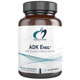 Designs For Health ADK Evail provides a synergistic combination of fat-soluble vitamins featuring 5,000 IU of vitamin D, along with efficacious amounts of vitamin A, vitamin K (including K1 and K2), a..
